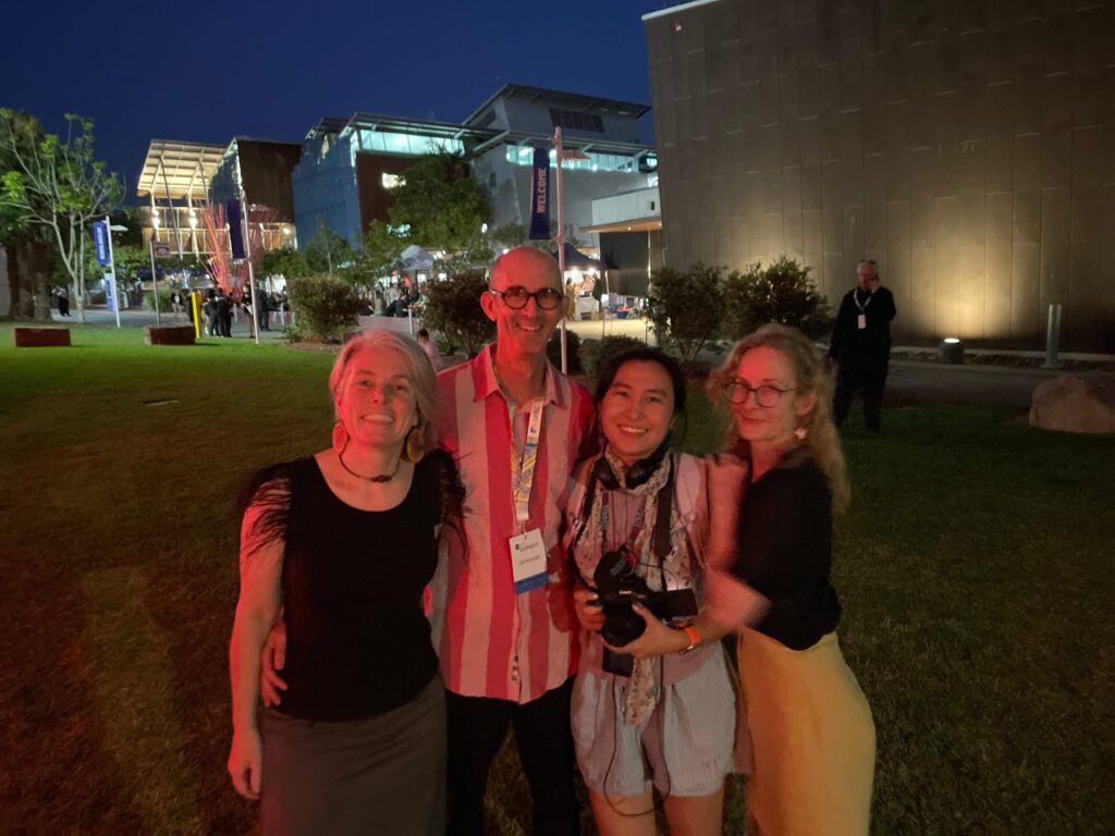 Shu with artist collaborators Professor Vanessa Tomlinson, Dr Erik Griswold, and Dr Ally Bisshop. Vanessa and Erik owns Wylah Nature Refuge in Queensland.